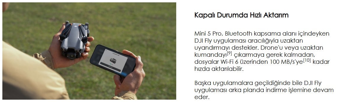 10 m/s'ye[16] çıkarılan Mini 5 Pro, yayla ortamlarına ve daha geniş ufuklara hazır.