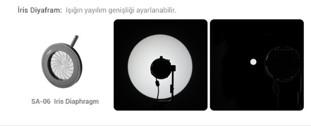 Projeksiyon Eki(SA-P1) için İris Diyafram , aparattaki yuvaya takılır ve yansıtılan ışık çemberinin boyutunu değiştirmenizi sağlar. |