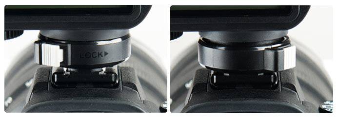 Godox X2T, otomatik olarak kilitlenen Godox V1 gibi yeni bir flaş kızağı kilitleme mekanizmasına ve onu çıkarmak için hızlı bir şekilde kilidini açıp çevirmek için bir düğmeye sahiptir.